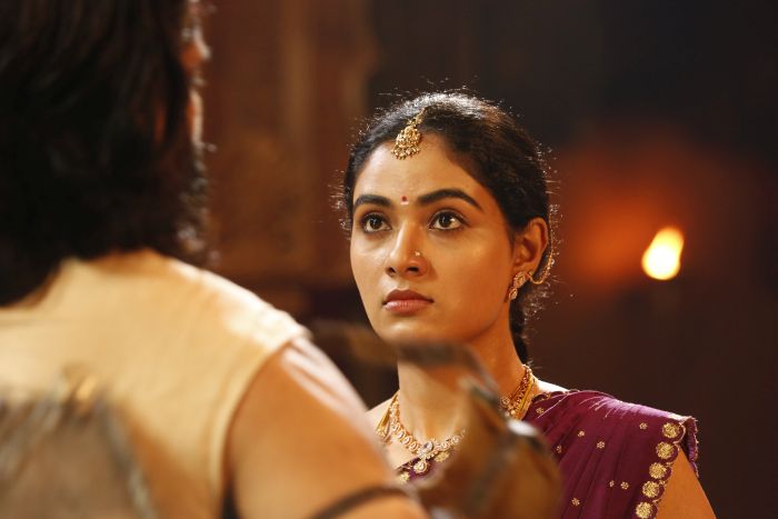 நாயகியாக, வீர சிம்ம காடவராயரின் மனைவி திரௌபதி தேவியாக ரக்‌ஷனா இந்துசூடன் நடித்திருக்கிறார். பார்வைக்கு அழகாக இருக்கிறார். கதாபாத்திரத்துக்குப் பொருத்தமான தேர்வு. நாட்டுப்பற்றும், ராஜவிசுவாசமும் கொண்ட பெண்மணியாக இருந்தும் துரோகிகளின் வலையில் விழுந்து கணவனையே சந்தேகித்து உதறித் தள்ளுவது, பிறகு உண்மை தெரிந்து வெகுண்டெழுவது, கிளைமாக்ஸில் துணிச்சலாக வில்லனை எதிர்கொள்வது என கனம் மிகுந்த திரௌபதி தேவி கதாபாத்திரத்தில் கச்சிதமாகப் பொருந்தி, அதற்கு உயிரூட்டி, அருமையாக நடித்திருக்கிறார்.