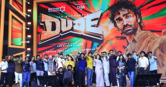 மைத்ரி மூவி மேக்கர்ஸ் தயாரிப்பில் கீர்த்தீஸ்வரன் இயக்கத்தில் நடிகர்கள் பிரதீப் ரங்கநாதன், மமிதா பைஜூ நடிப்பில் உருவாகியுள்ள படம் ‘டியூட்’. தீபாவளி பண்டிகையை முன்னிட்டு வரும் அக்டோபர் 17ஆம் தேதி வெளியாக இருக்கும் இந்தப் படத்தின் இசை வெளியீட்டு விழா பிரம்மாண்டமான சென்னையில் நடைபெற்றது.