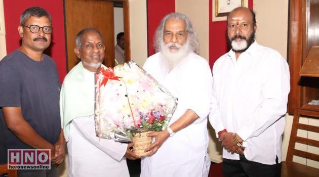 ஜேசுதாஸுக்கு பூங்கொத்து கொடுத்து இளையராஜா, இயக்குனர் பாபு யோகேஸ்வரன் மற்றும் ஜி.சிவா ஆகியோர் வரவேற்றனர்..
