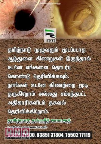உங்களுக்கும் மனதிலோ வெளியிலோ ஆழ்துளைக் கிணறு மூடப்படாமல் ஆபத்தான சூழலில் இருந்தால், உடனே தமிழ்நாடு தவ்ஹீத் ஜமாத்தை தொடர்பு கொள்ளுங்கள். தோழர்கள், அரசை போலில்லாமல் மனமுவந்து முழு அன்புடன் உதவுகிறார்கள்.